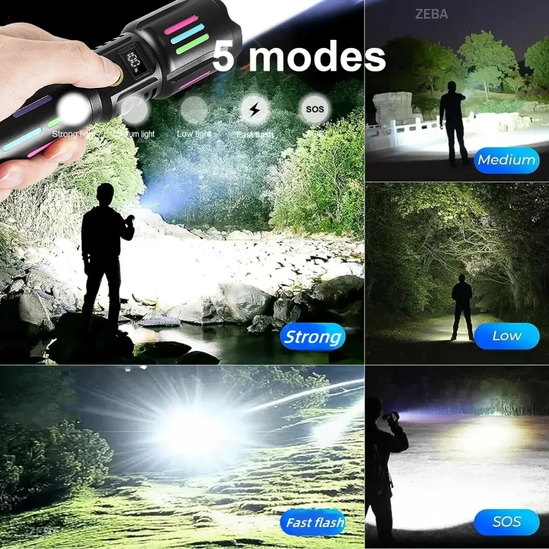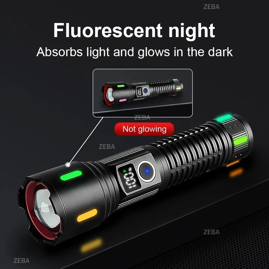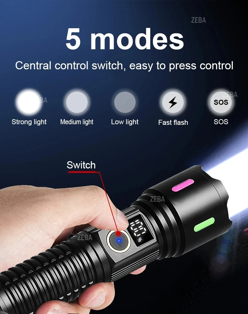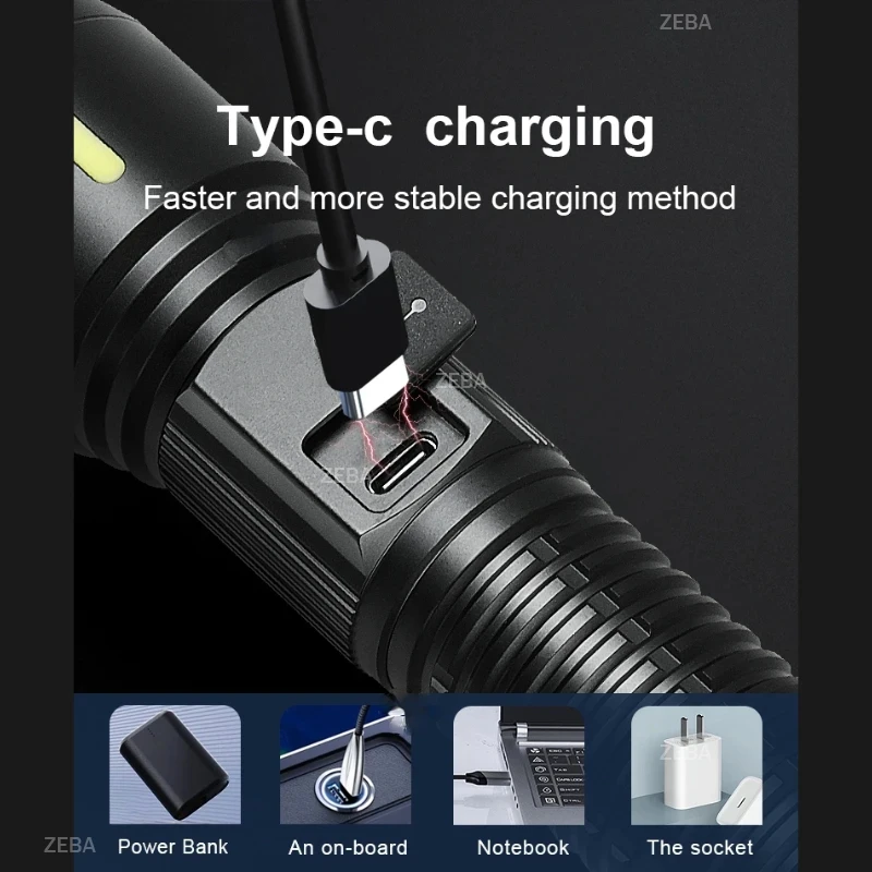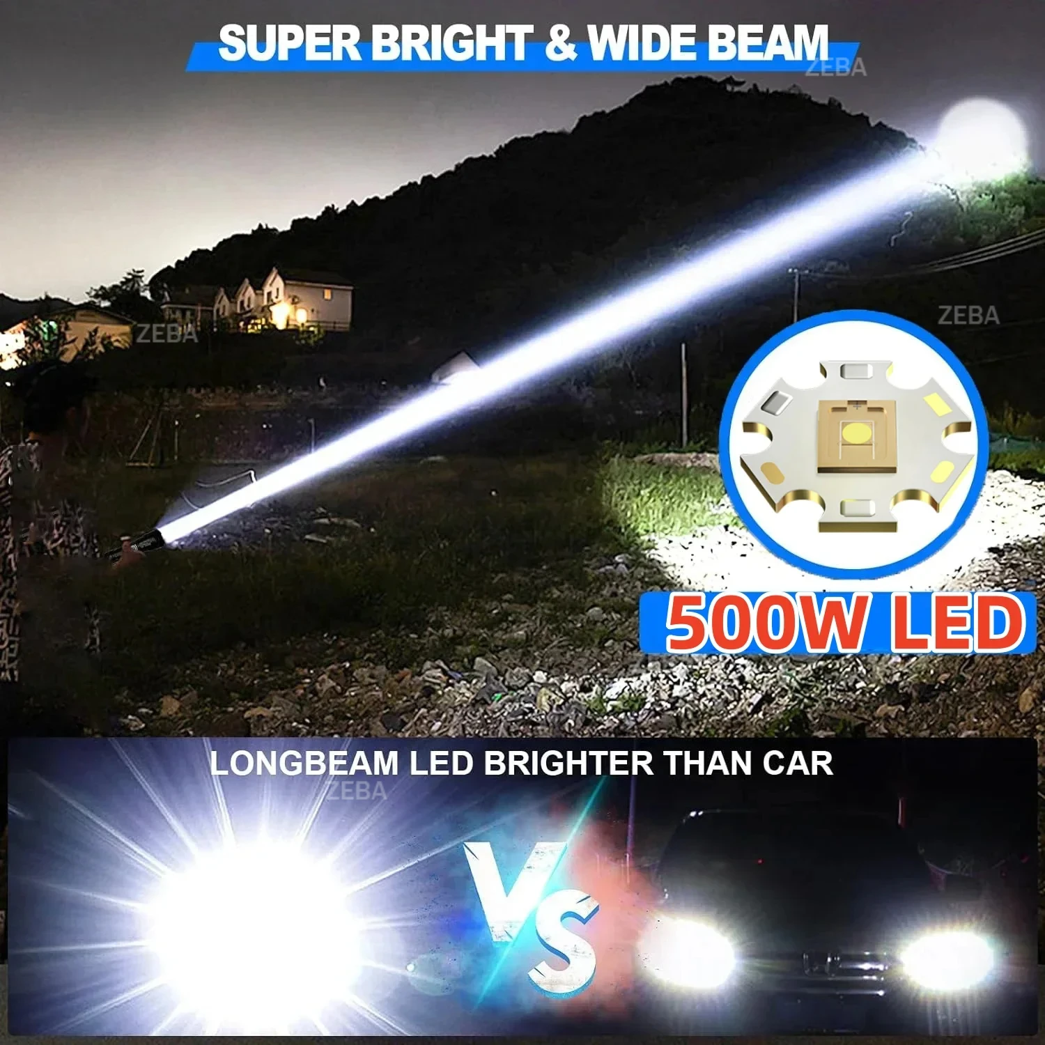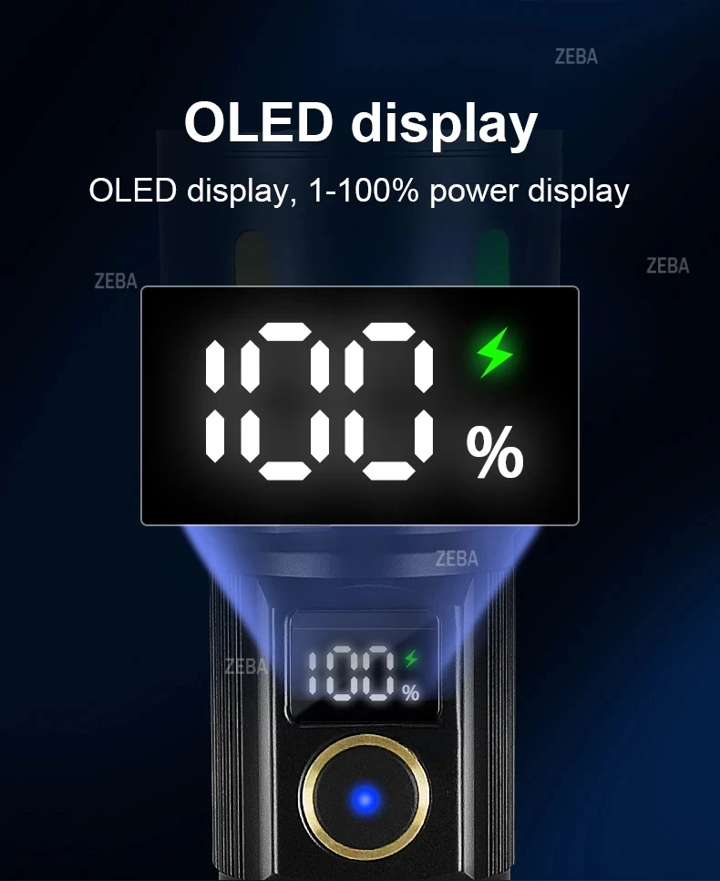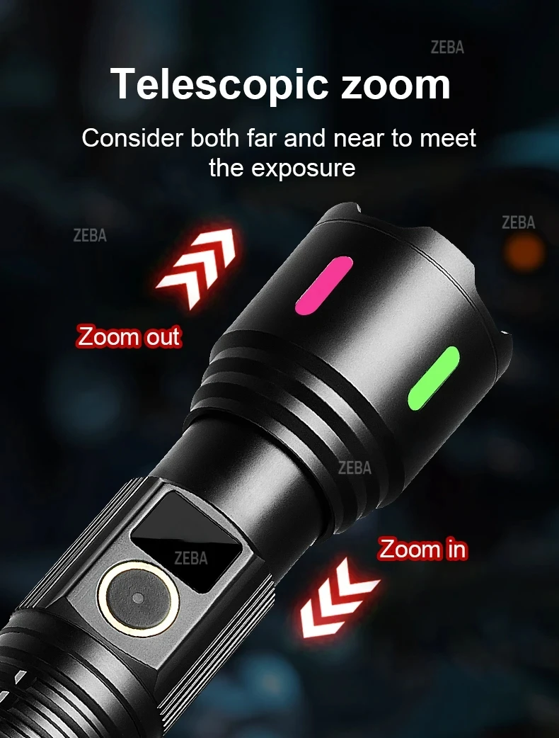 – This flashlight comes with a white laser wick. Compared with the previous generation XHP360 model, the light transmission efficiency and illumination width of the flashlight have been significantly improved. 10,000 lumens gives you an unprecedented wide view, instantly penetrating the darkness.