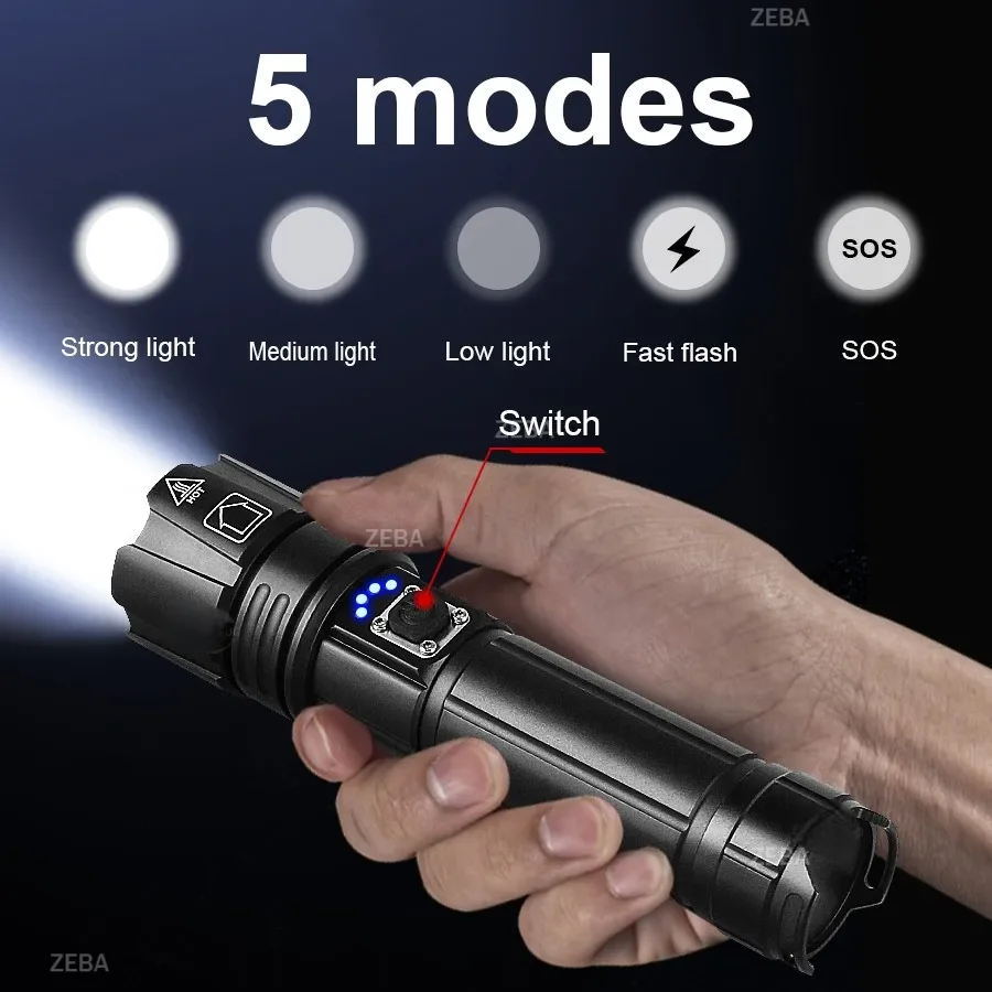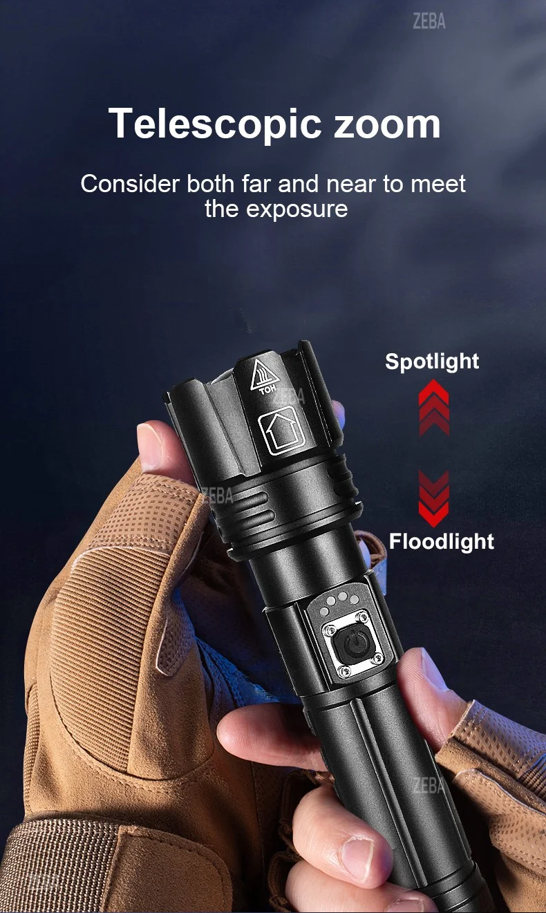 2026High power LED flashlight XHP360 LED rechargeable outdoor ultra bright light suitable for patrol outdoor lighting activities