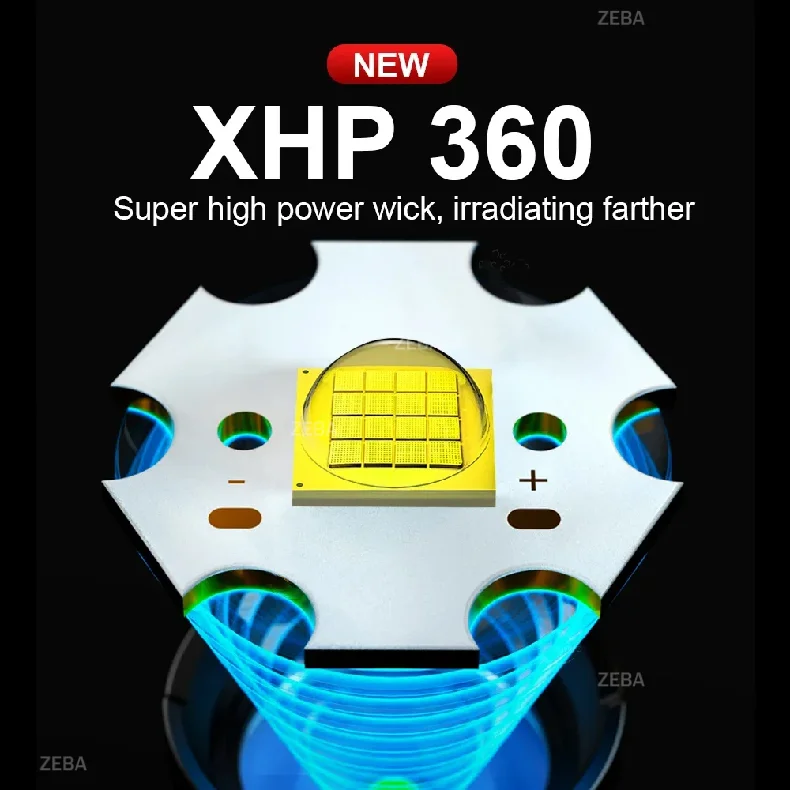 This is the exclusive upgraded XHP360LED portable bright light flashlight