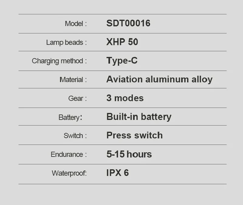 4-core XHP50 wick, greater lighting intensity and wider lighting range.