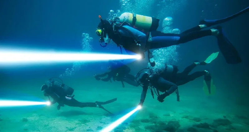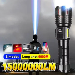 –This versatile flashlight shines with a staggering brightness of 3,000,000 lumens, providing an extensive beam range that effectively illuminates your surroundings, whether underwater or on land. Its robust construction ensures that it performs effortlessly in both environments, making it an indispensable tool for all your adventures.
