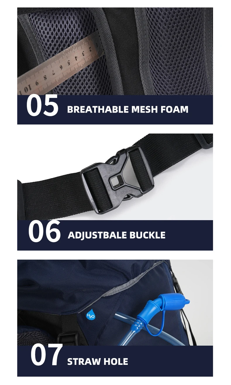 2.Hydration Backpack with water pipe outlet and with water pipe fixing clip on the shoulder strap.