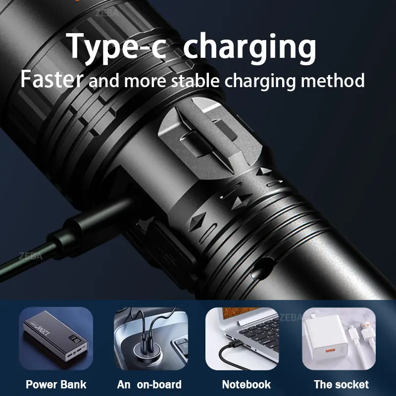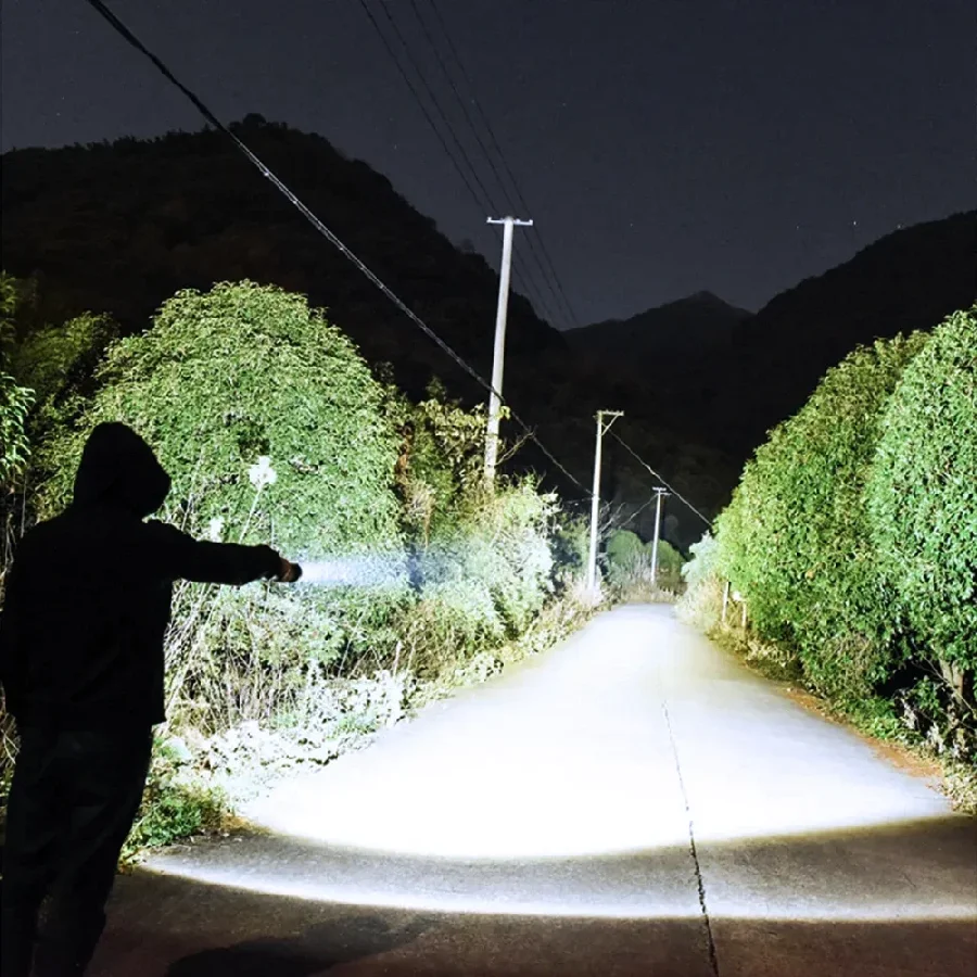 ����High-Power LED with 5000M Lighting Distance: Equipped with a high-performance LED wick, this flashlight delivers strong penetration and clear, bright light up to 5000 meters, ensuring visibility in any environment.