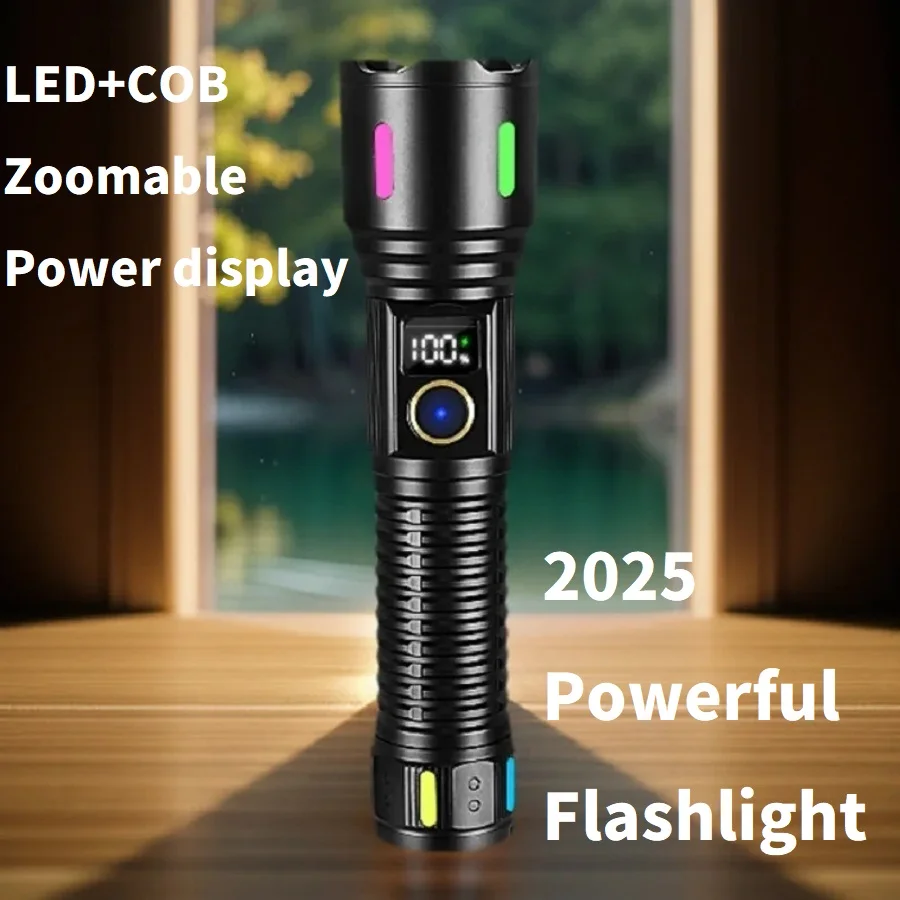 High Power LED Flashlight With Side Light Zoomable EDC Lamp USB Rechargeable Tactical Torch Waterproof Camping Emergency Lantern
