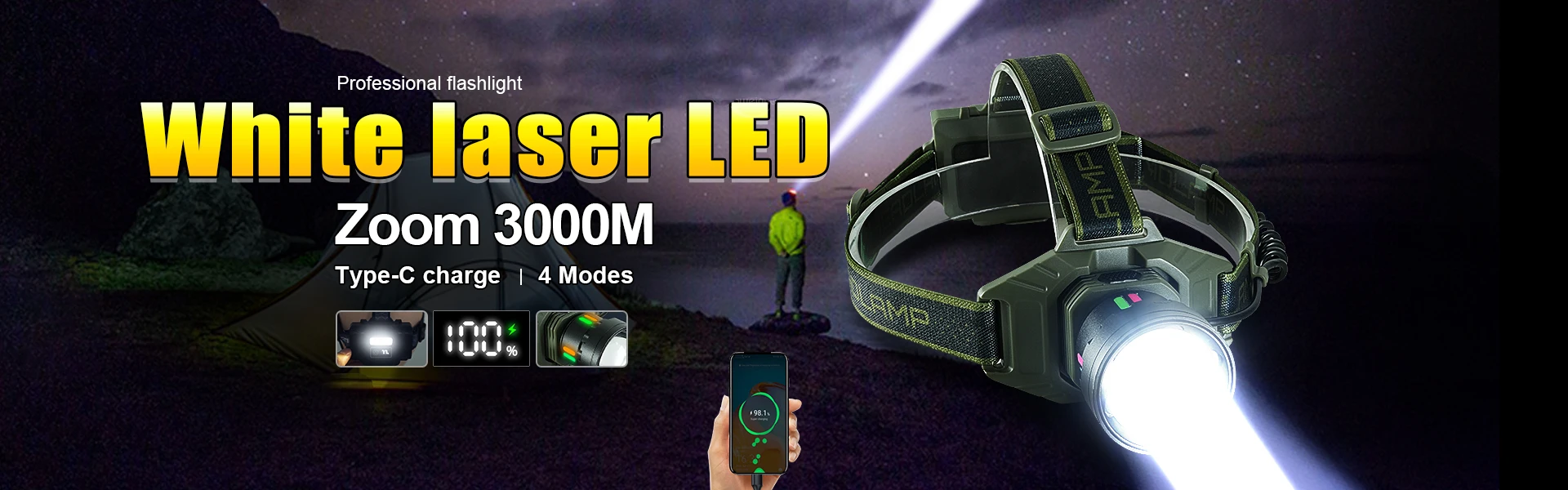 ※Using high-power white laser as wick, the stable output can generate an extremely bright beam, with bright distances and evenly distributed light, and emit over 3000m at a super long distance.
