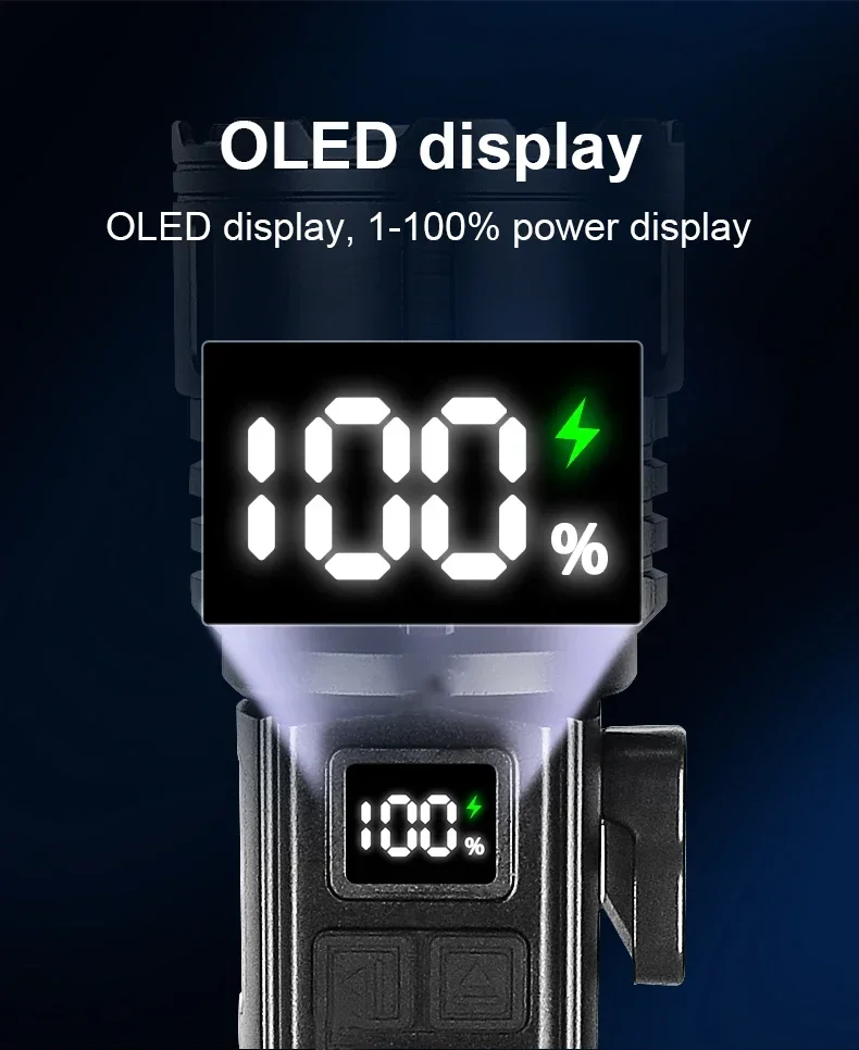 OLED digital power display–There is an obvious OLED power display at the switch, which can intuitively see the power consumption. When it is less than 20%, please charge it in time to avoid excessive discharge that will reduce the battery life.
