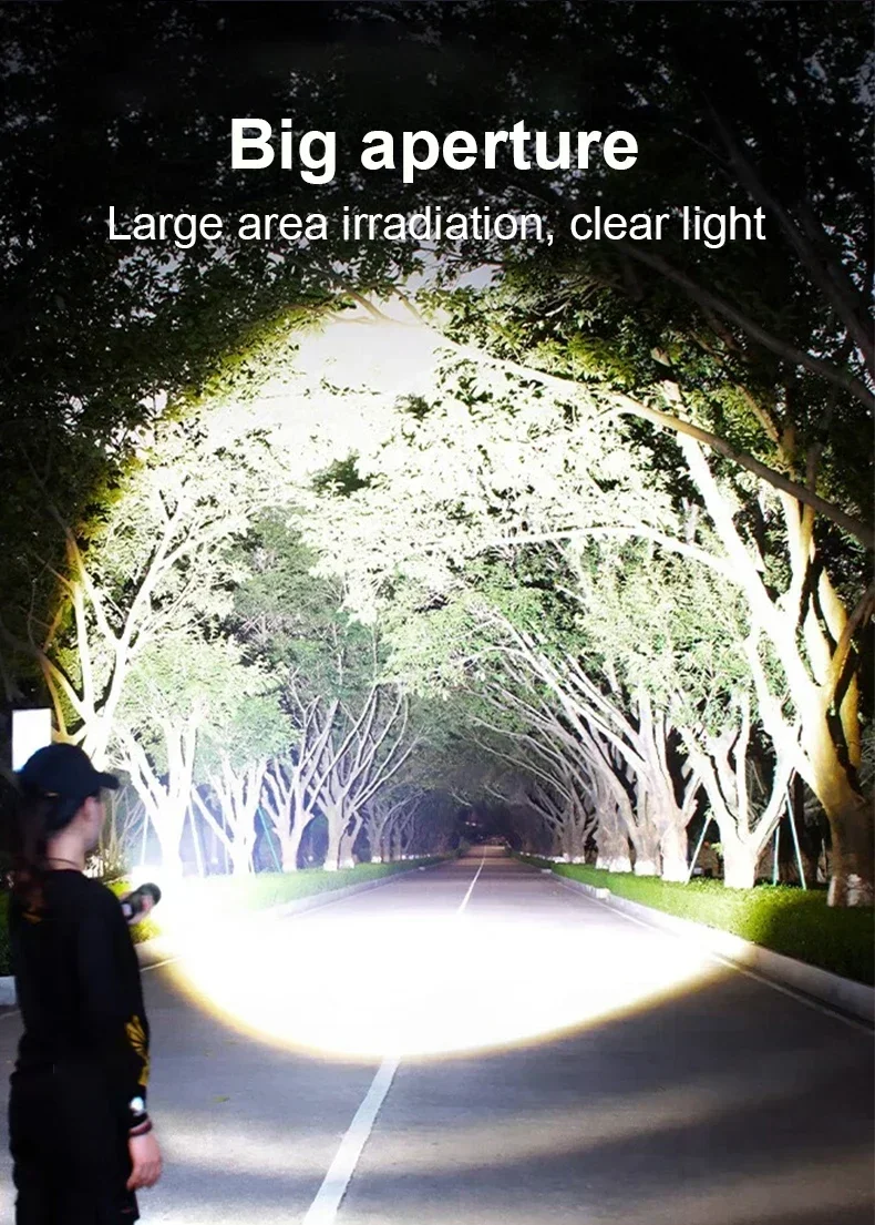 Telescopic zoom–The lamp head of the flashlight has a telescopic zoom function. When the lamp head is extended, it can illuminate a longer distance, and it has powerful focusing, allowing you to see more clearly. After the lamp head is retracted, it will be a normal illumination range, allowing you to see the surrounding things clearly.