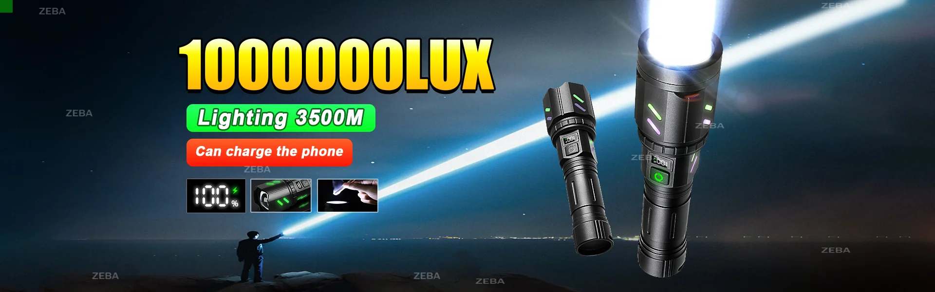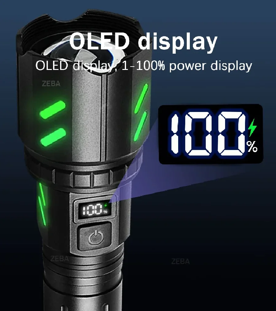 ▶ 1000000LUX high lumens flashlight, strong penetration, lighting distance can reach 3500m, providing you with a bright and safe lighting environment. The fluorescent strip on the lamp body will automatically light up after turning on the flashlight, will be brighter in dark or other low visibility environments, providing more powerful guarantees for your safety.