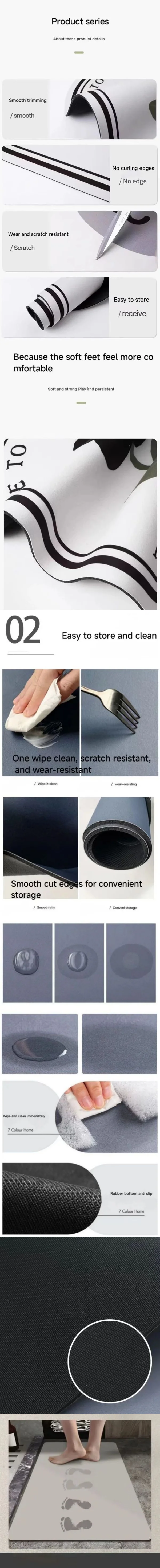 . Versatile Application:These mats are perfect for various rooms, including the living room, kitchen,and bathroom, offering versatility and functionality.