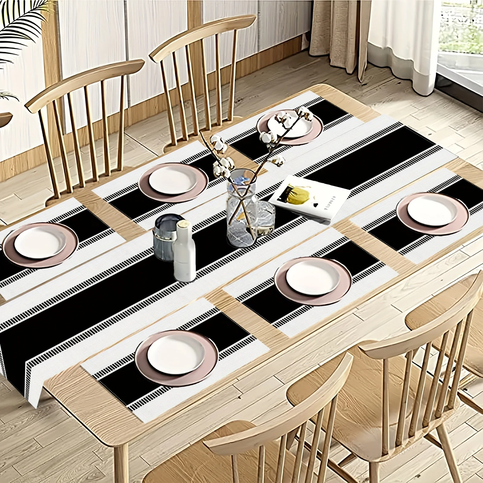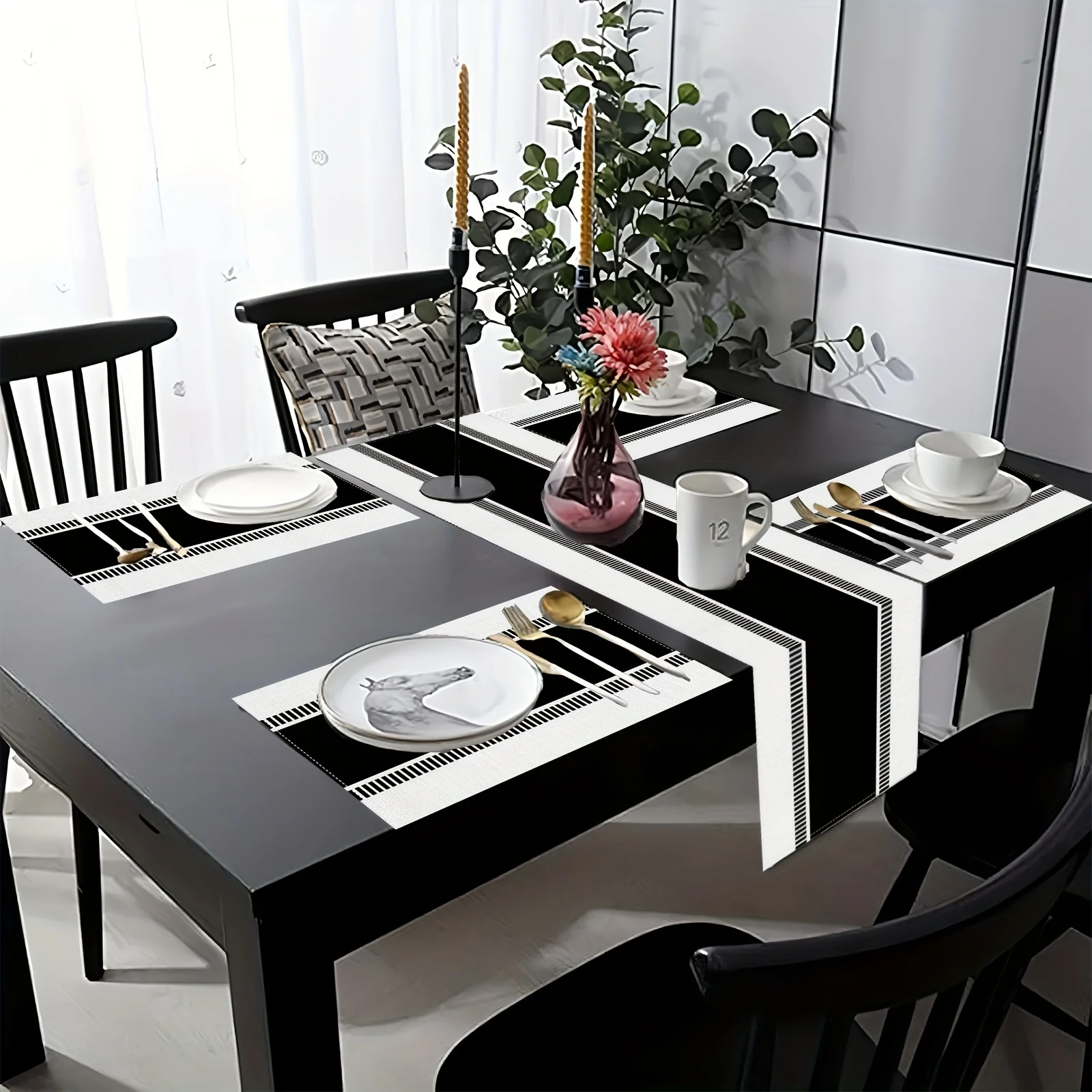 Be the first to review “VIKAMA 5/7PC American Minimalist Placemat Table Flag Set Black and White Restaurant Family Gathering Cafe Decoration Elegant”