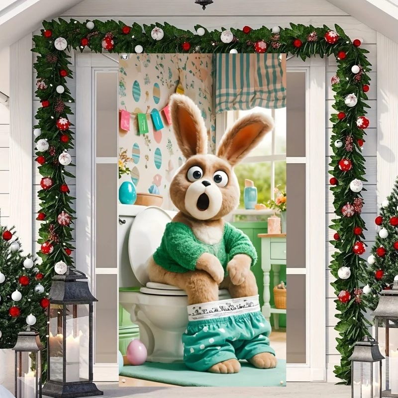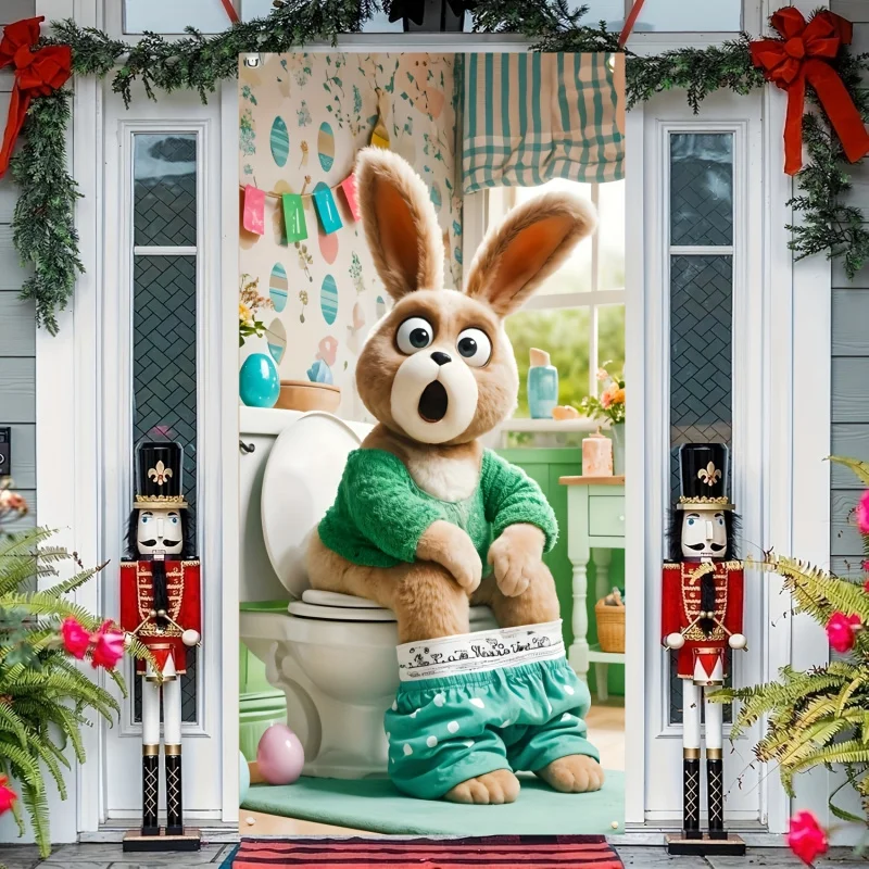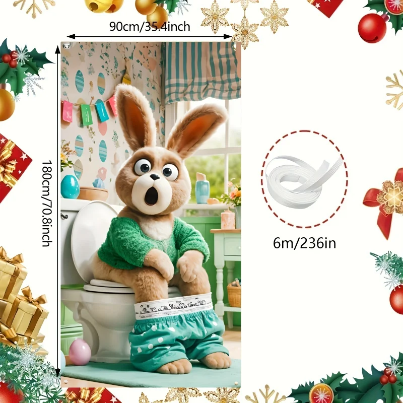 VIKAMA Hilarious Easter Rabbit Bathroom Style Tapestry Stylish Wall Decor For Apartment Studio Whimsical Aesthetic Backdrop